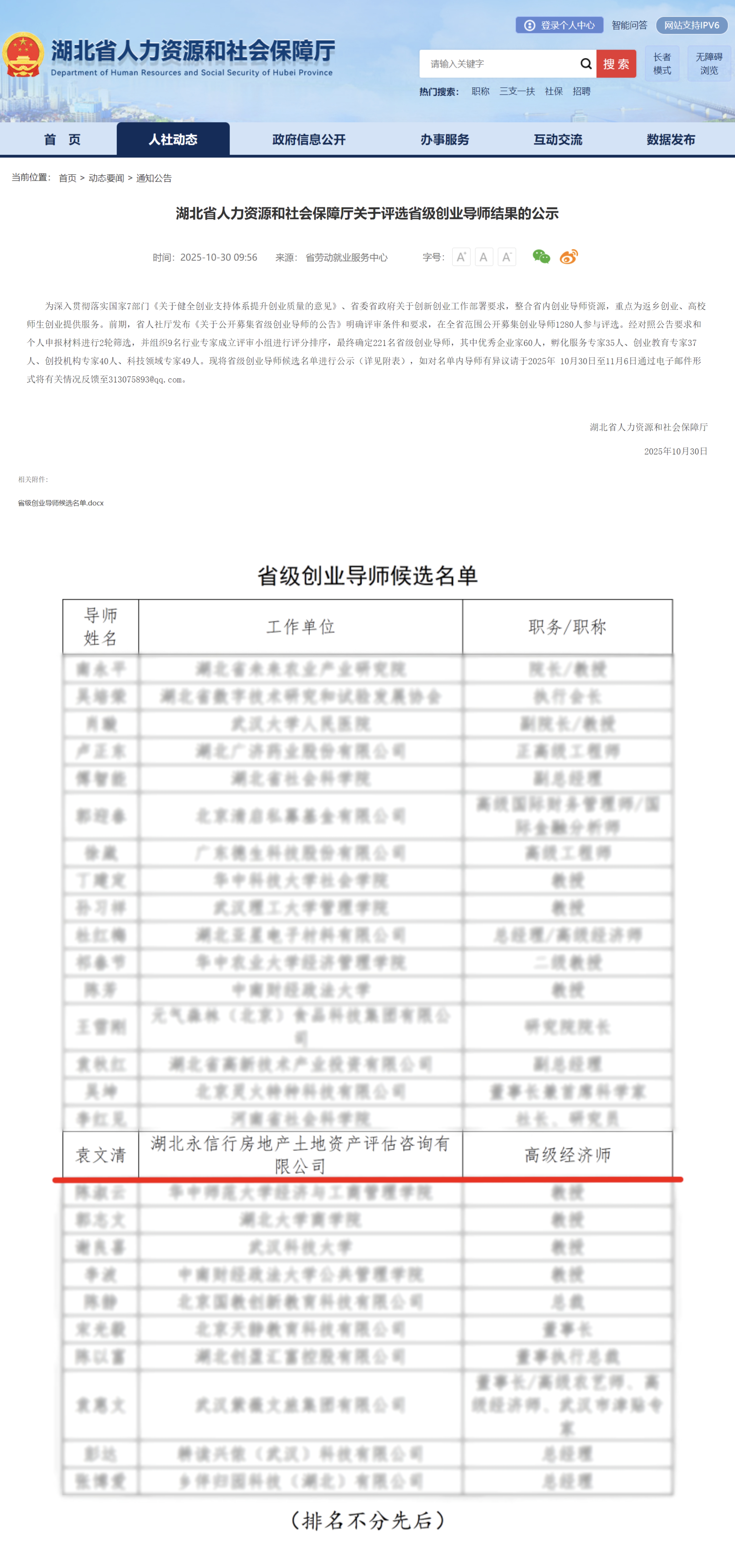 在湖北省人力资源和社会保障厅开展的省级创业导师评选中,经公开募集、多轮筛选及专家评审,永信行总经理袁文清成功入选,被认定为“优秀企业家”类别的省级创业导师。此次评选旨在整合优质导师资源,重点服务返乡创业与高校师生创业,全省仅221人获此资格,体现了袁文清总经理在创业指导与企业管理实践方面的突出影响力。