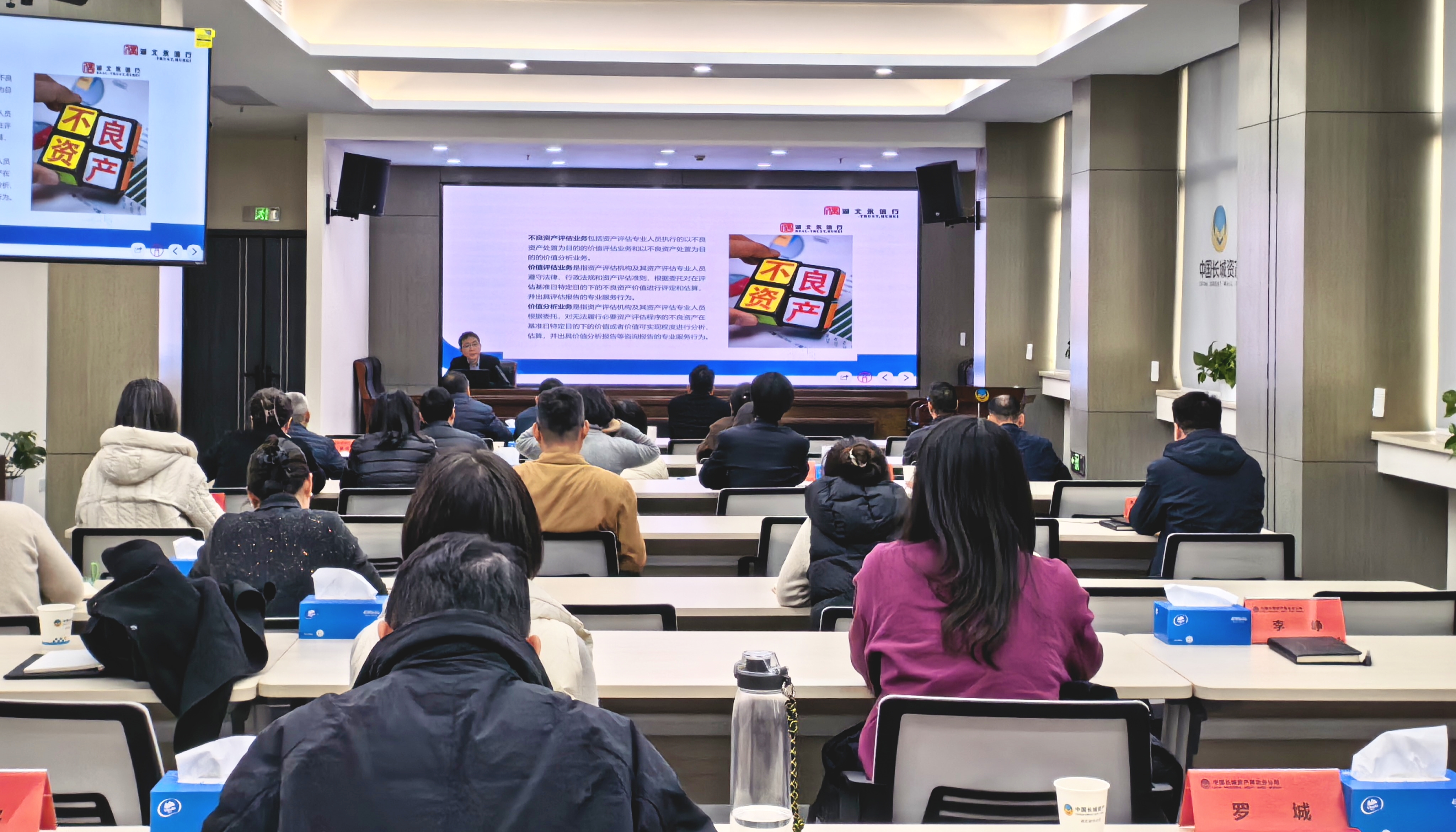 12月26日下午,永信行资产评估技术总监刘勇,应中国长城资产管理股份有限公司湖北省分公司邀请,开展题为“不良资产债权估值概要与实务”的专业培训。长城资产湖北分公司全体员工参加了本次交流。